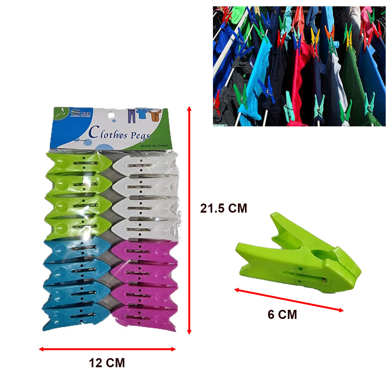 HW-607 (12 PCS) CLOTHES PEGS