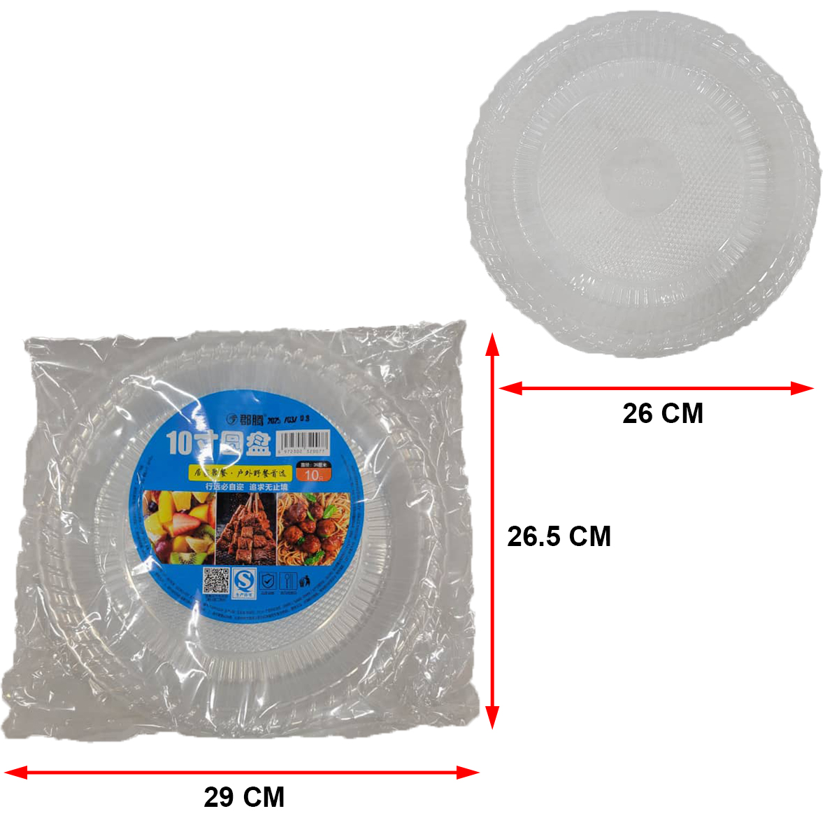 10INCH DISPOSABLE ROUND PLASTIC PLATE (10PCS)