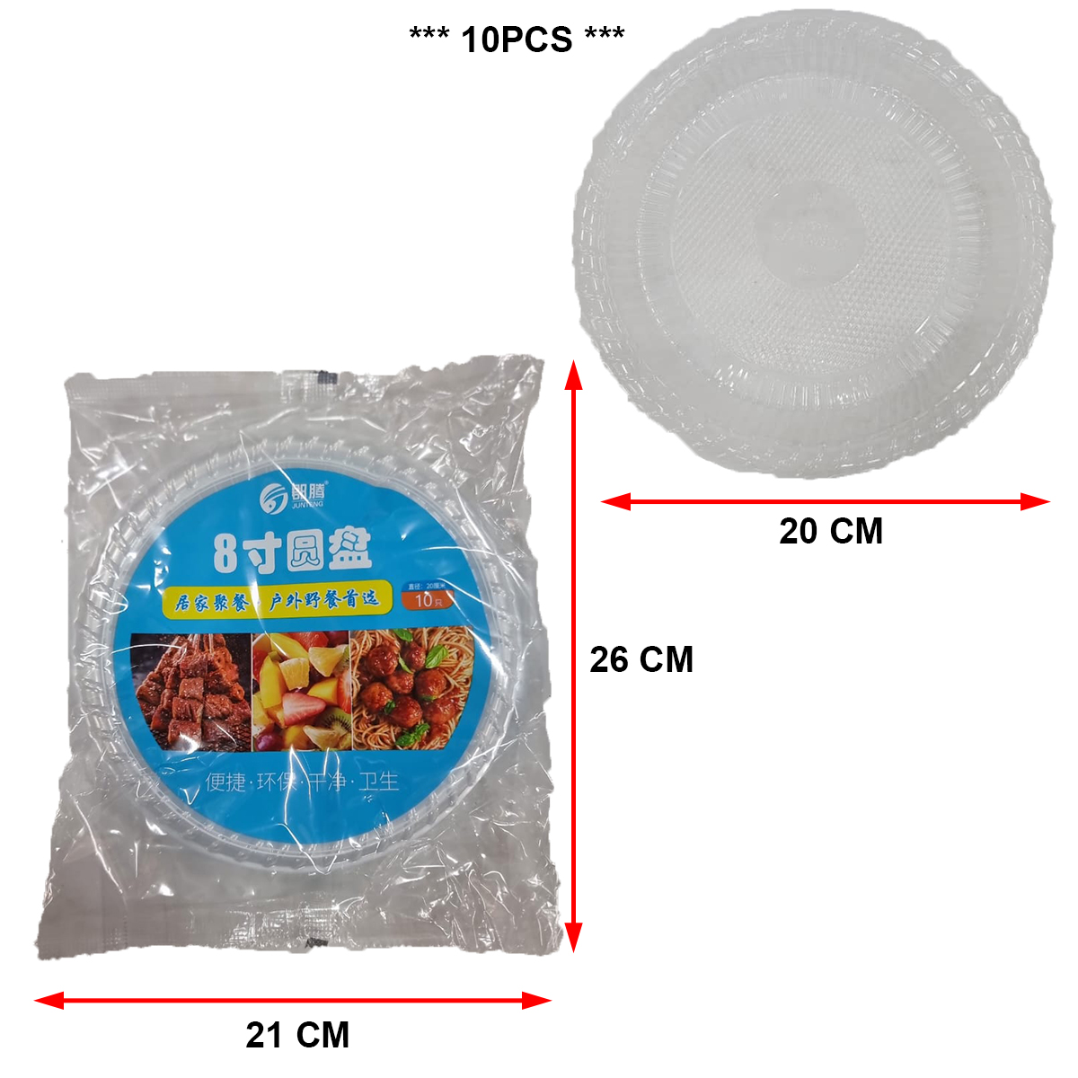 8INCH DISPOSABLE ROUND PLASTIC PLATE (10PCS)