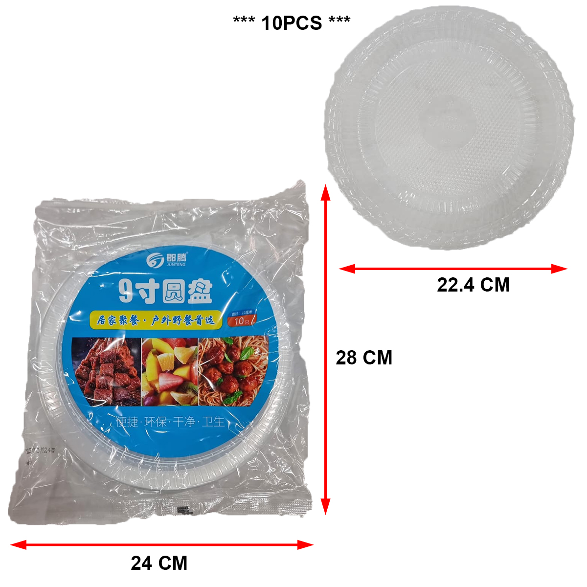 9INCH DISPOSABLE ROUND PLASTIC PLATE (10PCS) (A)