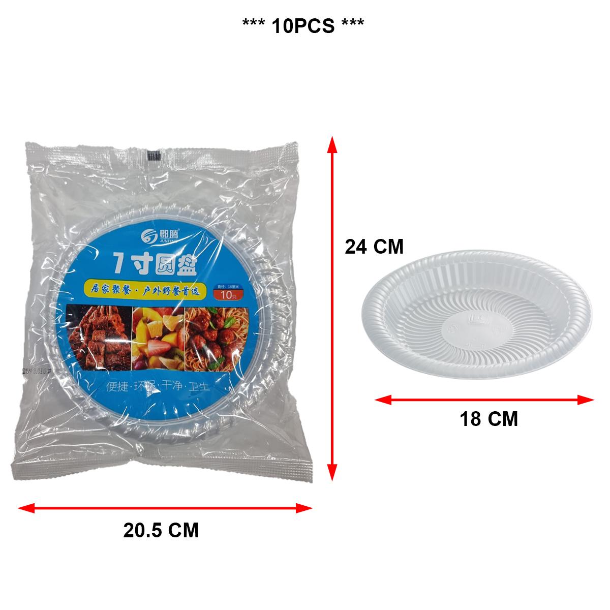 7INCH DISPOSABLE ROUND PLASTIC PLATE (10PCS)